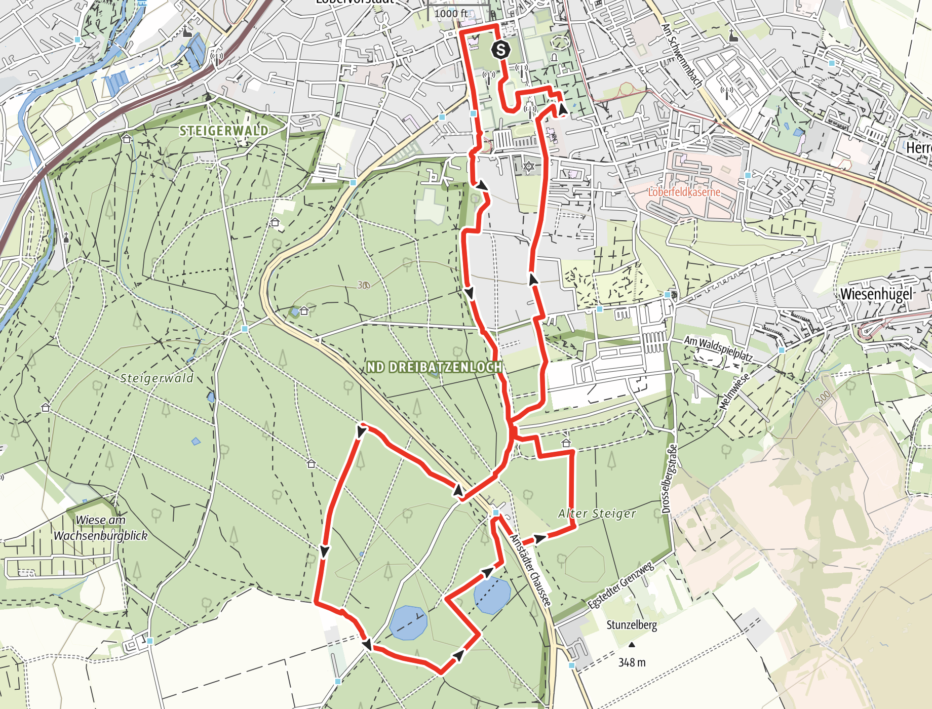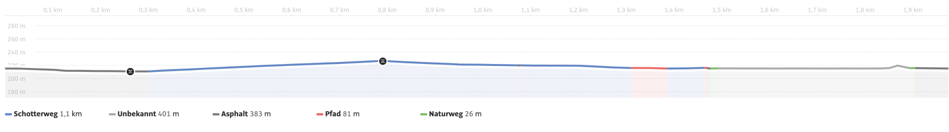 Höhenprofil 2 km Rund um das Steigerwaldstadion